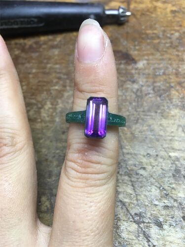 今日はこの子を仕上げました。 マルチカラーのアメジストは 美女と野獣ローズリングに 使うことにしたので この子用のストーンを調達。 こちらです。 ブルートパーズ❤️ 横から見るとわかるんですが カットの仕方がおもしろいんです。 色合いがディズニーのシ…